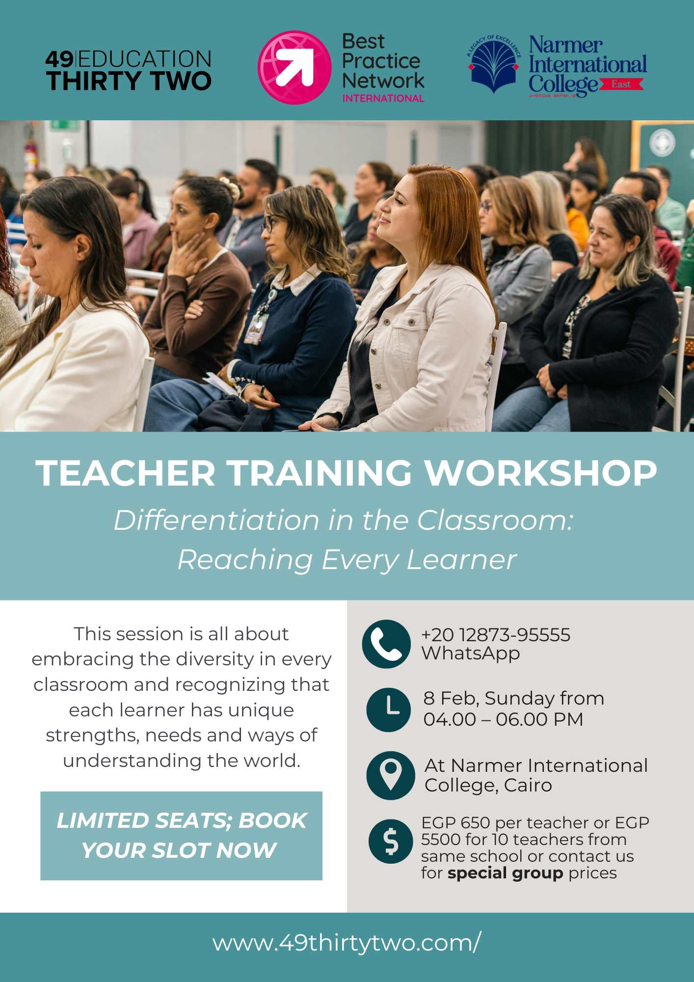 Price: 650 EGP per teacher | 5500 EGP for a group of 10 from the same school